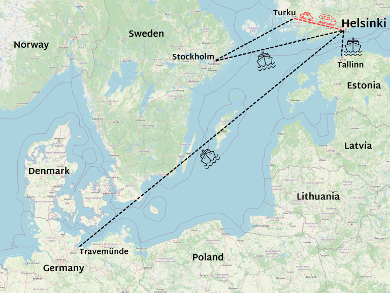 Helsinki is easily accessed by ferry from Stockholm, Tallinn, and Travemünde.